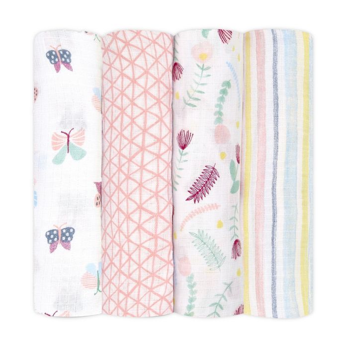 aden + anais™ essentials 4Pack Floral Cotton Muslin Swaddles in Pink